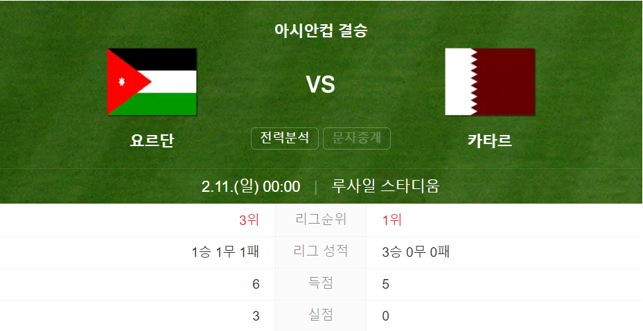 - 아시안컵 결승 카타르 vs 요르단 전력비교