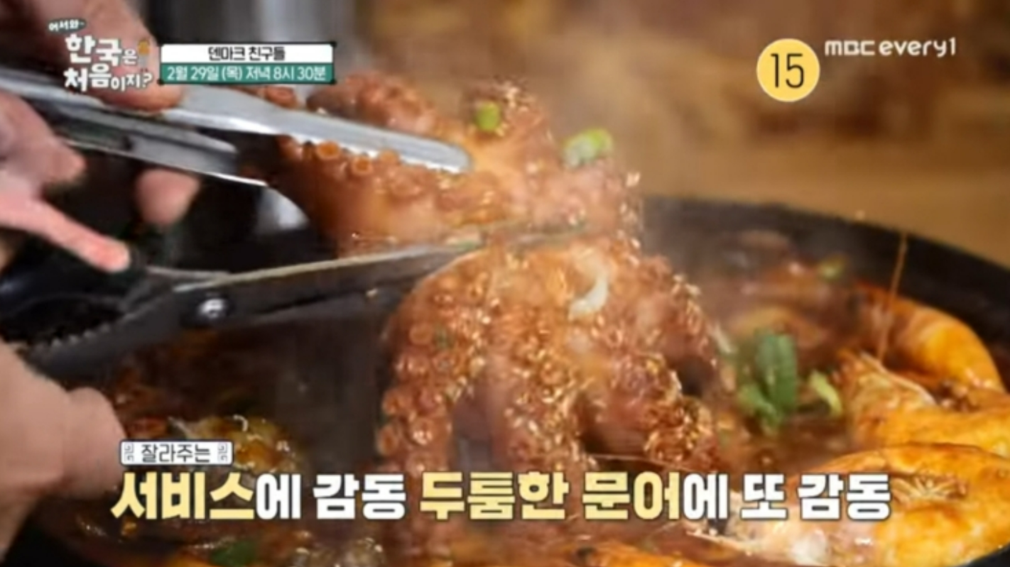 어서와 한국은 처음이지 덴마크 삼 형제가 제주 해산물을 맛보기 위해 찾아간 식당에서 메인 메뉴인 해물갈비찜이 나오자 형제들은 압도적인 비주얼에 놀랍니다.