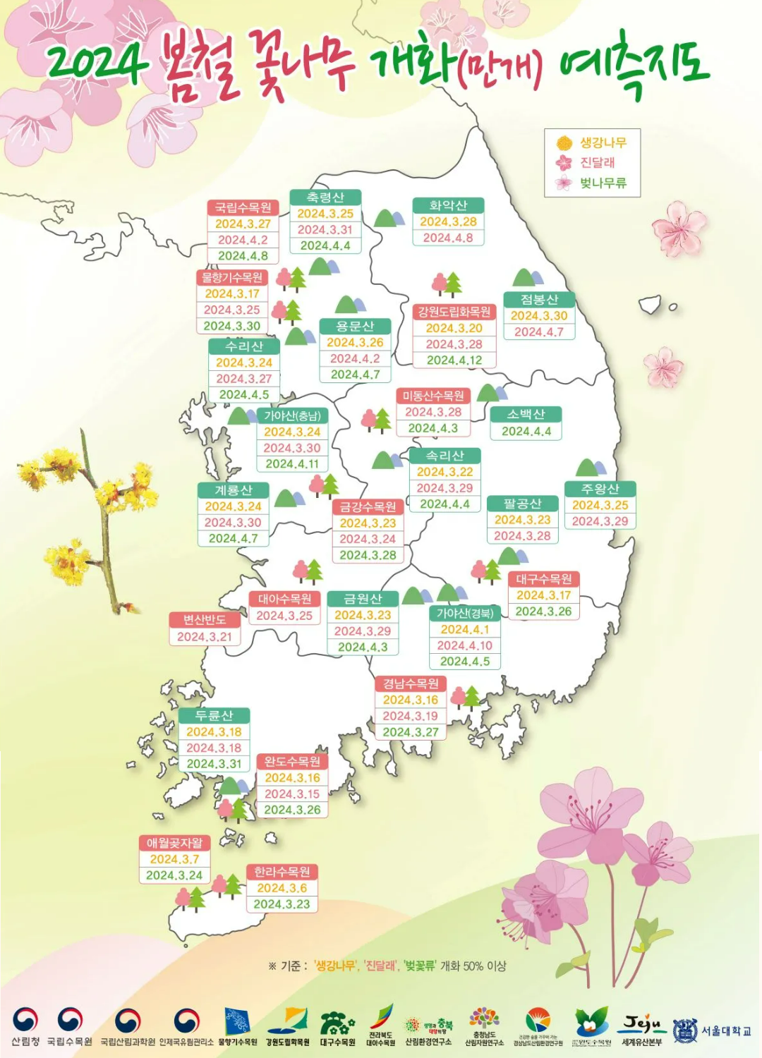 먼저, 2024년 우리나라 봄꽃 개화시기를 알려드리겠습니다.
